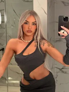 I'm a slim blonde with a medium length haircut that I love to toss around when I’m talking. My mix of cultures shows up in the way I move – a bit of east, a bit of west, and a whole lot of personality. I’ve got a small tattoo that you’ll notice when we get close, and I keep my style simple – no piercings, just natural, shaved down where it matters.